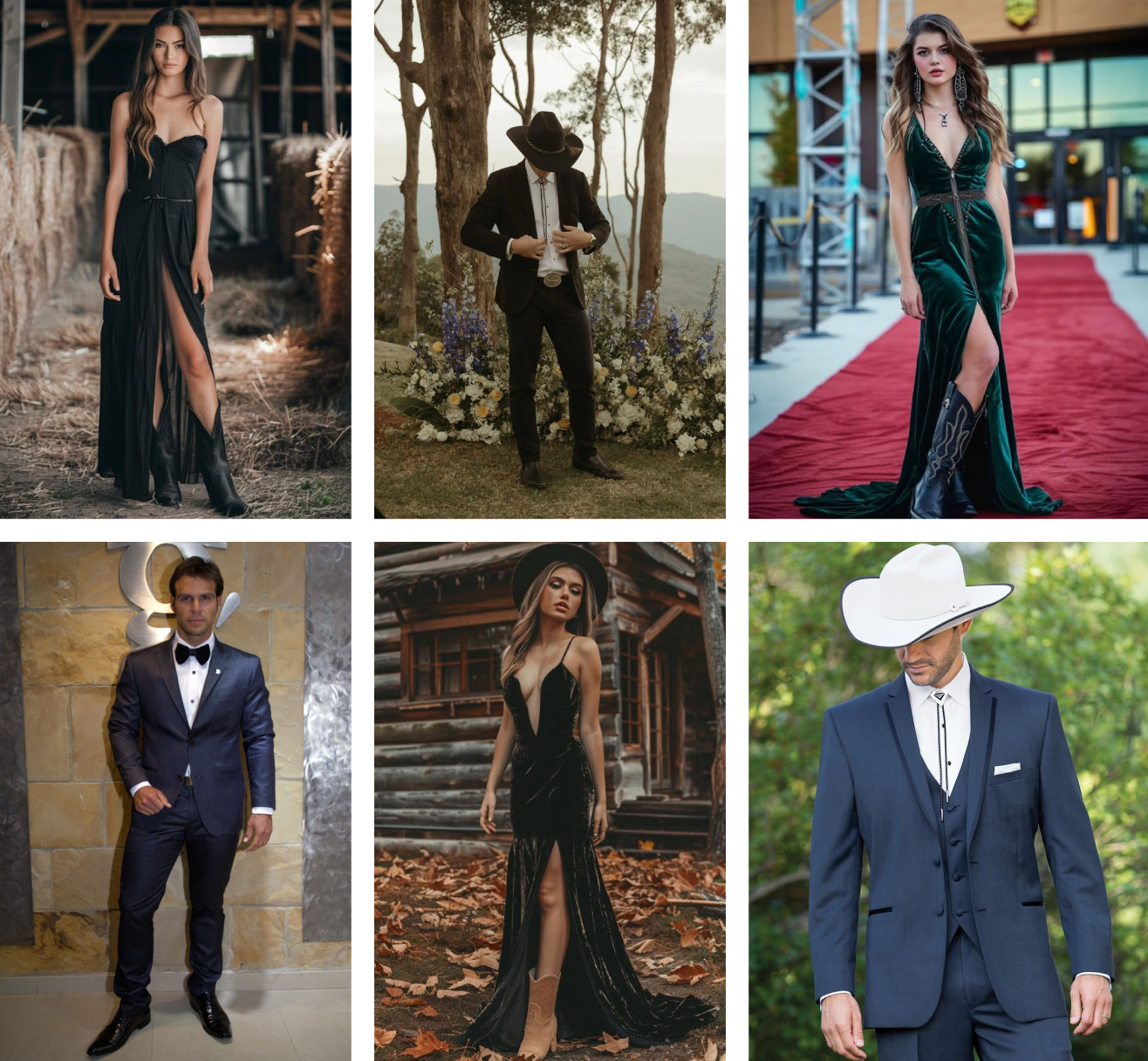 MUJERES: Vestido largo con tacones o botas texanas (opcional).